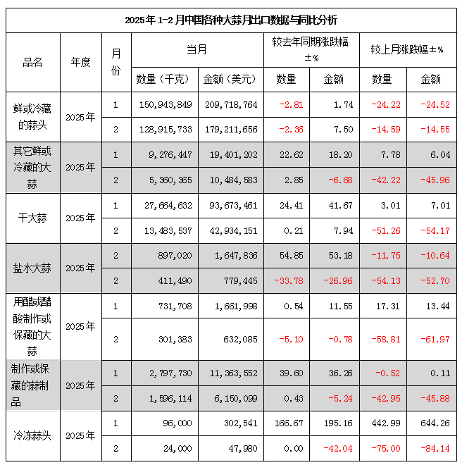 2025年1-2月份,庫內(nèi)大蒜行情起伏明顯,1-2月份大蒜出口情況如何?