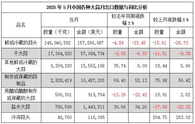 5月份大蒜出口量,同環(huán)比均大幅下降!