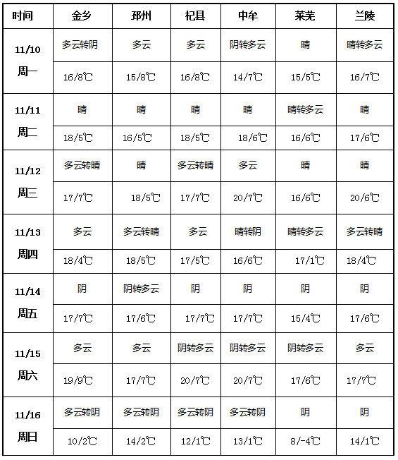 本周金鄉(xiāng)、邳州、杞縣、中牟、萊蕪、蘭陵等產(chǎn)區(qū),將以多云或晴好天氣為主,周內(nèi)無明顯降水。前期產(chǎn)區(qū)氣溫相對溫和,后期氣溫出現(xiàn)大幅跳水。本周最高氣溫出現(xiàn)在 11 月 15 日,金鄉(xiāng)、杞縣、中牟達(dá) 19-20℃;最低氣溫出現(xiàn)在 11 月 16 日,萊蕪低至 - 4℃,其他產(chǎn)區(qū)也降至 1-2℃,晝夜溫差較大。